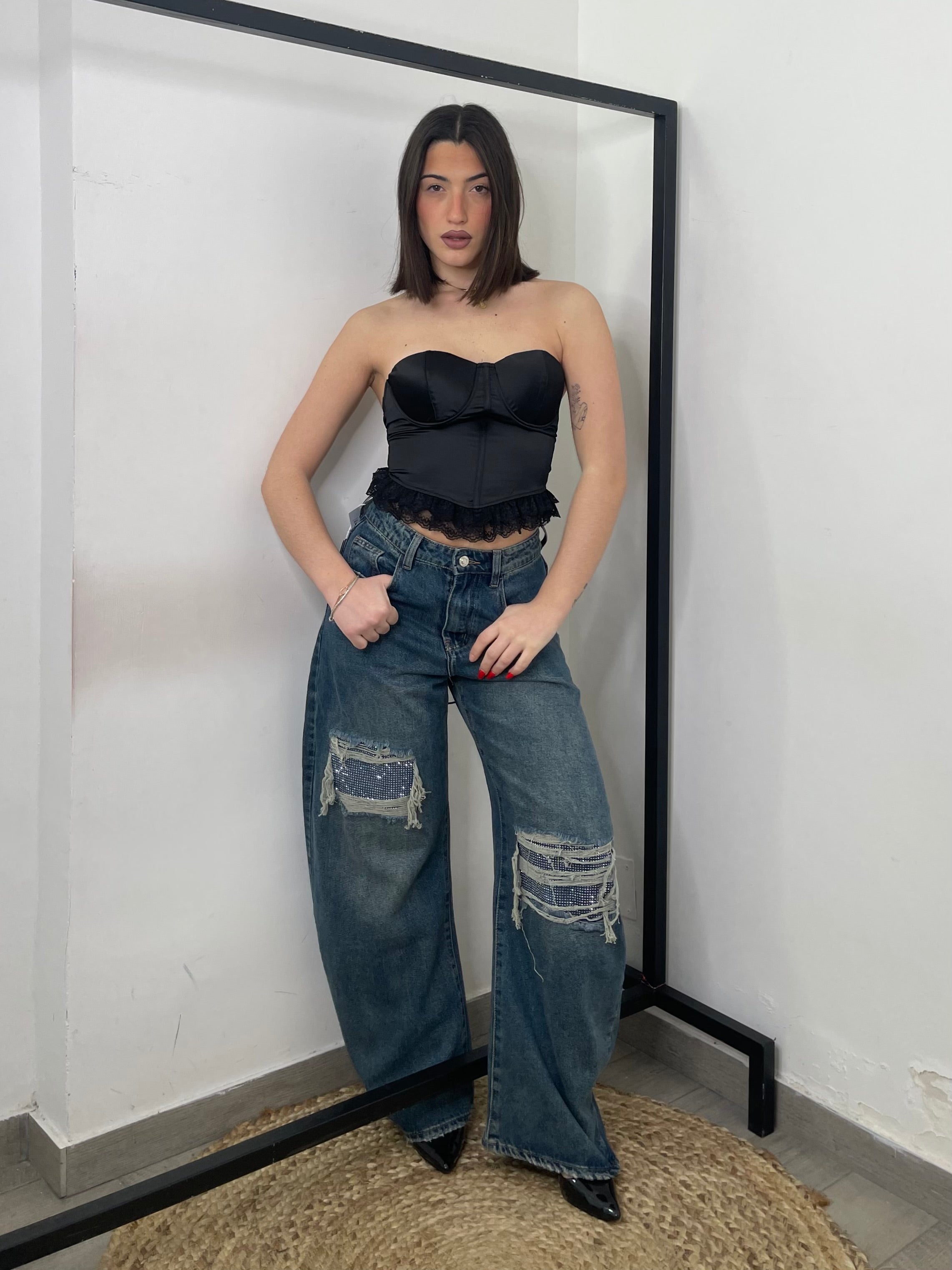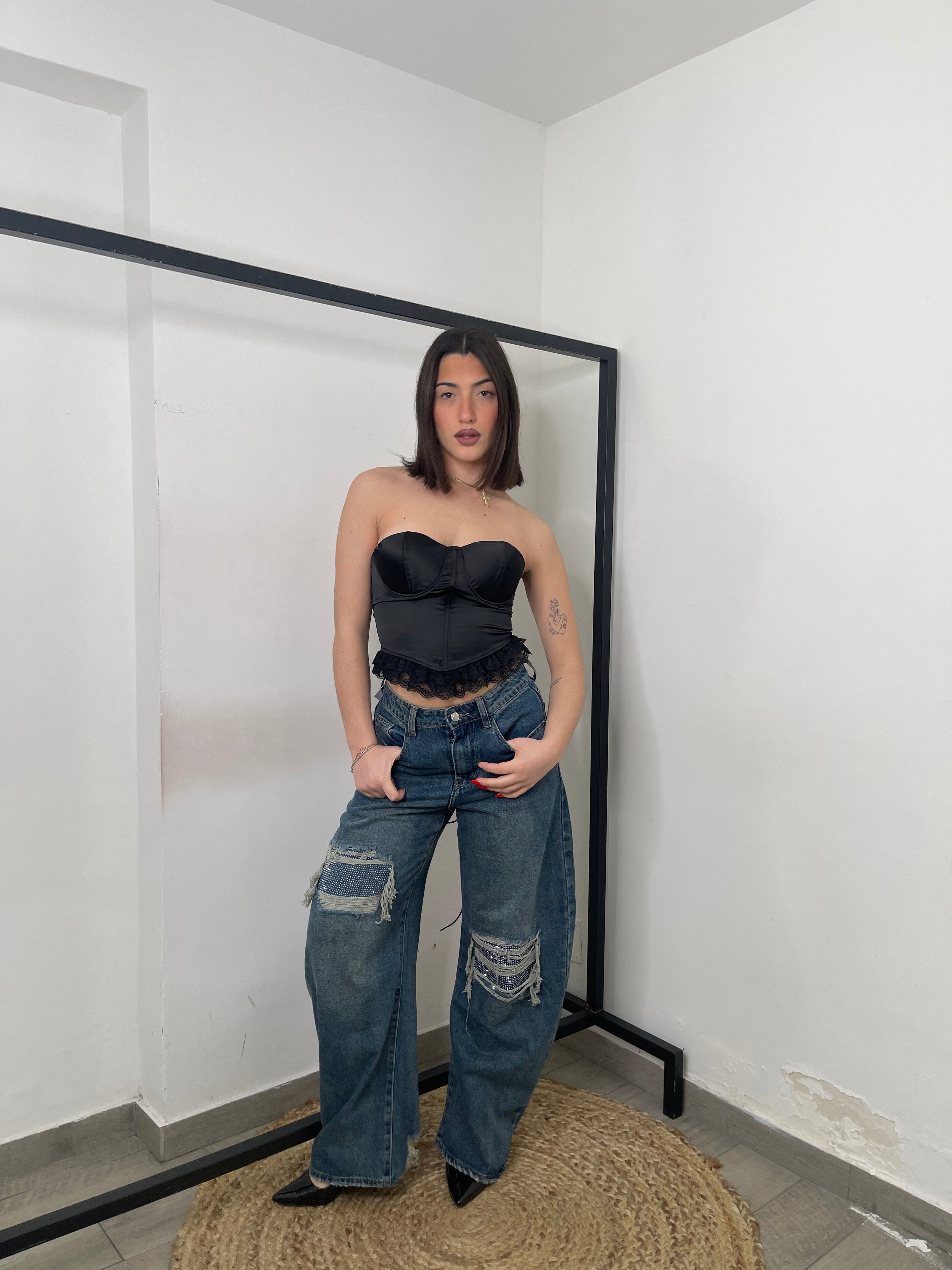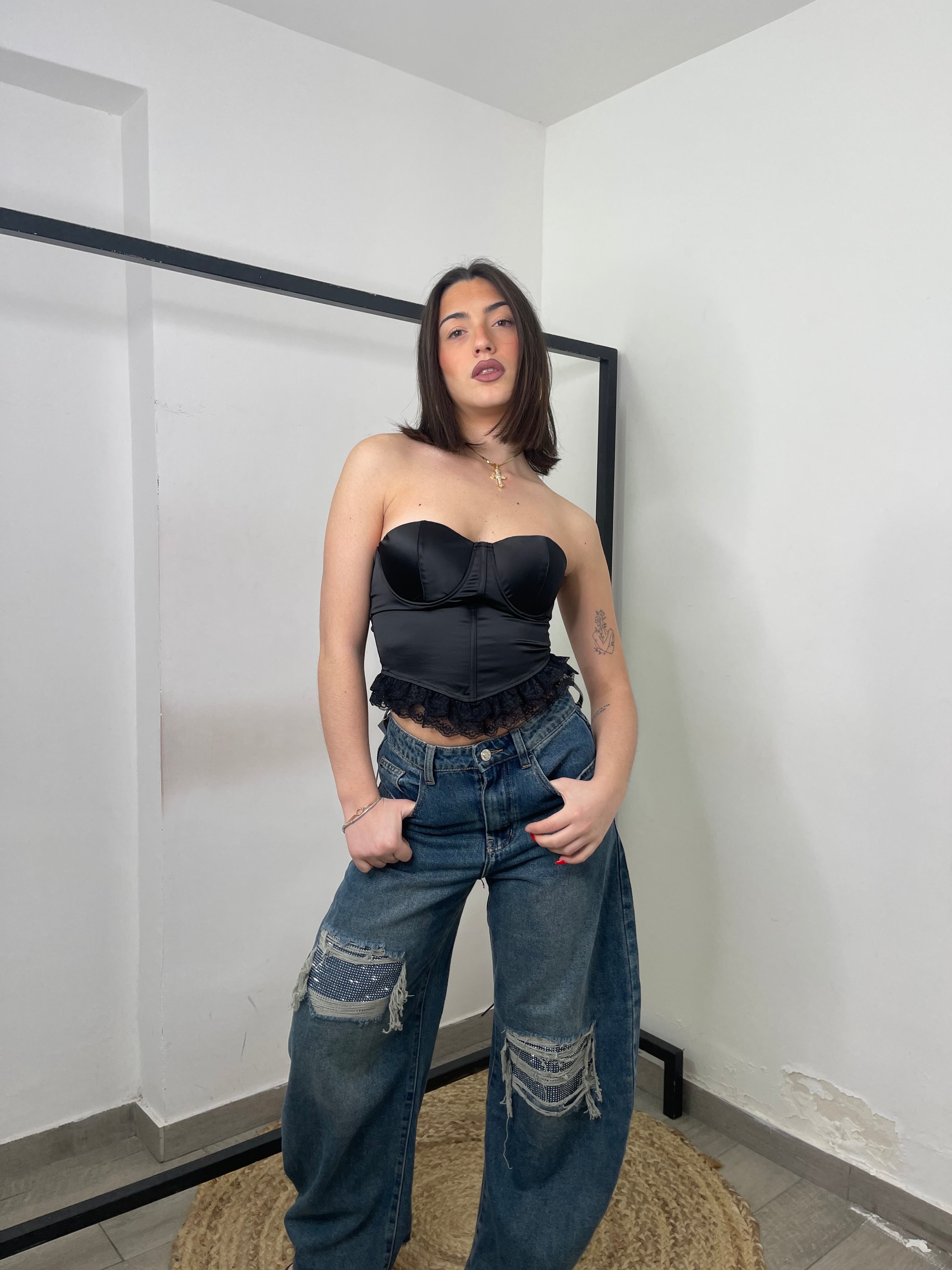 Corpetto in raso con stringhe